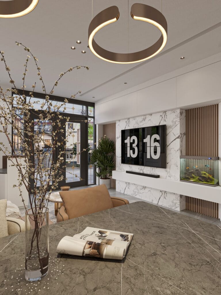 • Sử dụng gam màu sáng chủ đạo kết hợp với nội thất gỗ tự nhiên, vừa hiện đại vừa gần gũi.